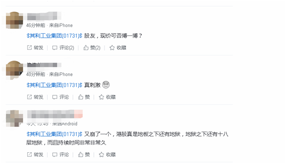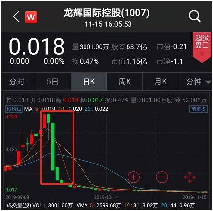 港股投资风险到底有多大?来看看闪崩股的蹦极式表演就知道了。11月15日,港股上市公司其利工业集团午盘后突然出现了大跳水。当天下午14:45左右,原本股价毫无波澜的其利工业集团突然急转直下,向下猛冲。直到下午15:10左右,短短25分钟时间,股价就从前日开盘价3.390港元附近暴跌至最低0.470港元,跌幅超85%左右。截至当日港股收盘,其利工业集团报收0.580港元,跌幅仍然高达83.14%。仅一个交易日,上市公司市值蒸发了32亿港元。