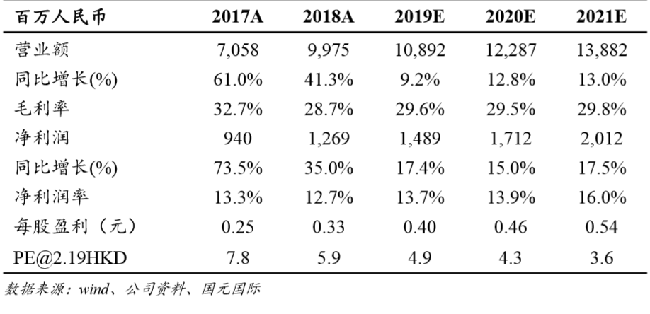  维持目标价 3.18 港元,买入评级: 公司目前股价对应 2019 年 PE 和 PB 分别为 4.9 倍和 0.6 倍,股息率约 6.1%。估值优势明显,安全边际高。我们看好公司 A 股发行后,未来流 通性的改善及估值的提升,维持公司目标价 3.18 港元,相当于 2019 年 7.1 倍 PE 和 0.9 倍 PB ,目标价较现价有 45%的升幅,维持买入评级。