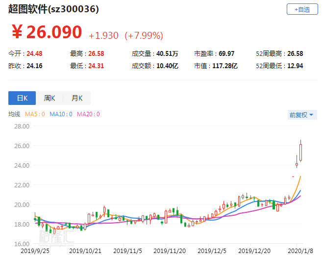 格隆汇1月8日丨超图软件(300036.SZ)涨近8%,报26.09元,总市值117亿元。