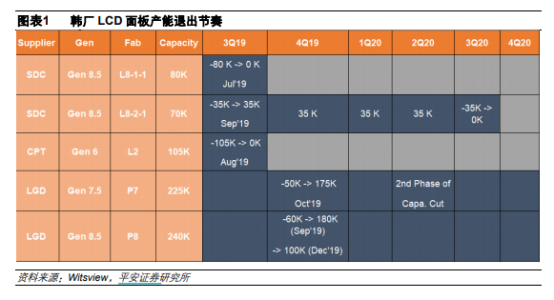 此外除了LG Display开始退出LCD的生产,2019年三季度三星SDC已关闭部分G8.5产线日本松下也在年宣布退出液晶面板业务,将于2021年终止生产LCD面板。