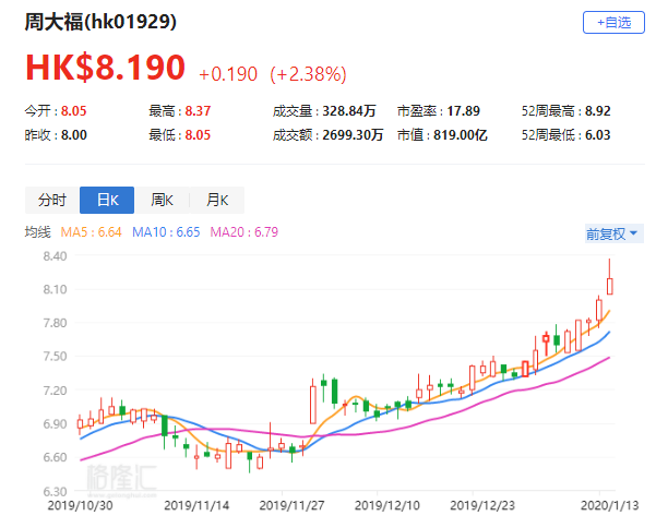 花旗:维持周大福(1929.HK)“买入”评级 目标价9港元