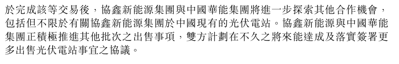 协鑫新能源与中国华能达成转让资产交易协议