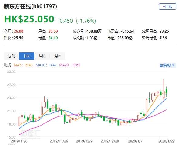 中金:上调新东方在线(1797.HK)目标价28%至25.6港元