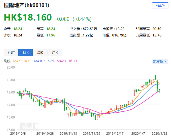 花旗:维持恒隆地产(0101.HK)“买入”评级 目标价21.1港元
