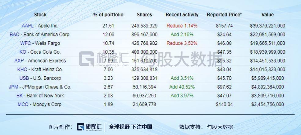 2017年四季度,苹果股票首次超越富国银行,成为伯克希尔公司重仓的第一大股票。