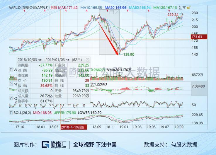 但是巴菲特依旧坚持看好苹果,2019年1月2号苹果跟随整个美股大盘反转,一年时间涨了整整一倍。