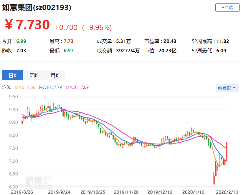 A股异动 | 如意集团涨停 控股股东已在生产疫情防护物品
