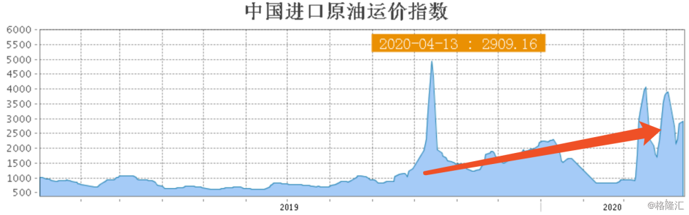 另外一个角度,美国和中国又是世界上石油消费量最大的两个国家,但是美国目前可以自给自足,而我们超过三分之二的需求需要进口来解决。所以前段时间也看到了一个新闻,说中国用84艘VLCC去中东趁着低价去买油。虽然84艘被证实是假的,但是从中国进口原油运价指数可以看到,我国的确是油趁机囤油的现象。