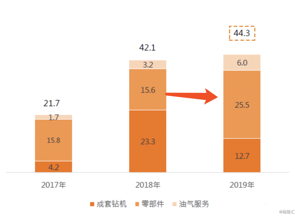 第二个方面,公司业务方向也紧跟着国家能源安全,业务开始偏向国内,同时从设备公司,慢慢往油服公司转型,用装备带动服务,且宏华去年开始推进整机到部件的战略方针,零部件销售大增,推动整体毛利率上升,公司整体毛利率从25.7%提升至29.7%,比去年高4个百分点。在低油价时期,虽然成套装备的需求会下降,但是装备更新换代需求仍存在。下图看的很明显,宏华零部件的收入大幅上涨。