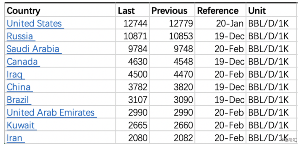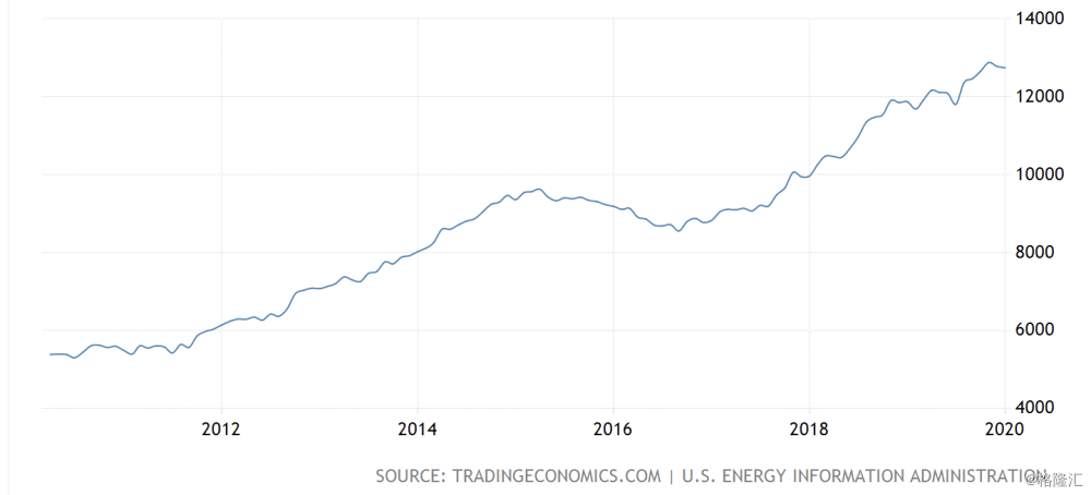 上图是美国石油的产量,可以看到,美国石油产量从2010年左右500多万桶每天增长到了现在1300万桶每天,超过了俄罗斯和沙特,成为世界最大的产油国。