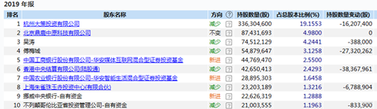 wind数据显示,2019年年报中,包括机构在内的公司前十大流通股东,前四位中除了北京鼎鹿中原科技有限公司外,均有减持动作。