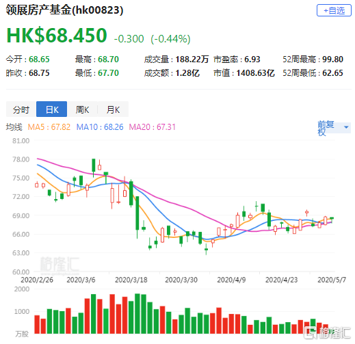 美銀維持對領展的“買入”評級,目標價78港元,預期集團2020財年的每單位分派為2.786港元,按年增長2.7%,2021財年則為2.818港元,按年上升1.2%。