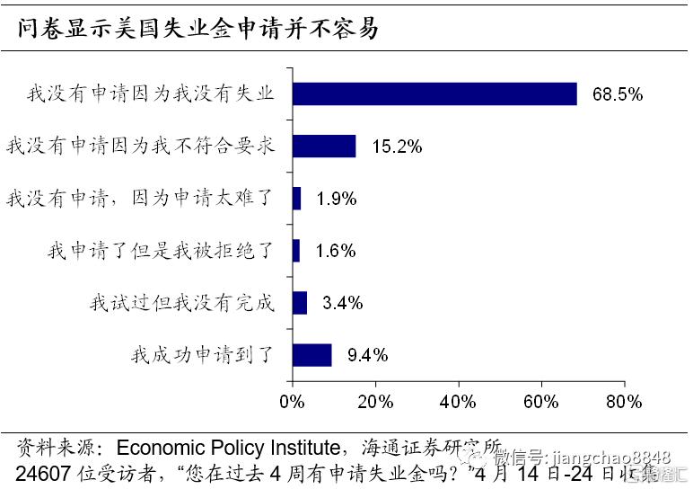失业金与1200美元现金派发缓慢。虽然财政刺激政策大幅增加了失业金的金额,并直接为年收入7.5万美元以下个人派发1200美元现金,但是实际上,失业金很难申请,且派发缓慢。根据One Fair Wage的估算,截止到514日,全美只有56%的申请者收到了第一笔失业金,这也说明真实失业数据比统计数据更高。由经济政策研究所的调查问卷(414-24日收集)显示,符合失业金领取要求的人中,仅57%成功申请到了失业金。通常在申请完失业金后2-3周就可以收到失业金,但现在有些州需要长达1个多月才能收到失业金。1200美元现金的派发同样十分缓慢,根据美国国税局(IRS)的估算,截止到518日,仍有超过1000万人尚未收到这份现金补助。