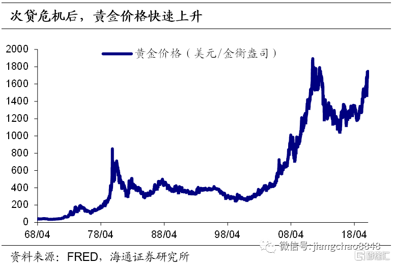 投资机会方面,债券性价比降低,寻找保值的优质资产。全球央行货币超发的背景下,货币贬值是必然事件。长期通胀风险下债券性价比降低,实物资产和优质股票更可能获得更高的回报。实物资产包括黄金、大宗商品、优质地段房地产。历史上每一次大危机过后黄金价格都迅速上升。08年金融危机后黄金价格在巨量流动性的背景下迅速上升,上涨幅度远超1978年经济危机时期。