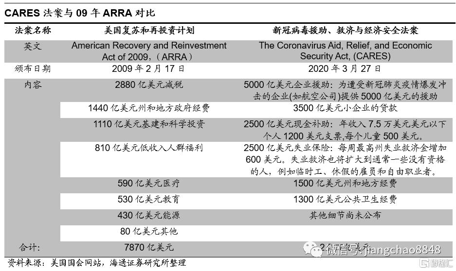 财政救助方面,金额更大,范围更广。体现在:1)增加对失业人群的救助规模和力度。本次不仅延长了失业保险的领取时间,更是将每周州失业救济金增加600美元,并把领取人群扩大到临时工、休假的雇员和自由职业者(之前只有在正规公司工作的失业人群才能领取失业金)。2)直接派发现金补助。本次将12.5%的救助金直接派发给民众,有助于在疫情期间稳定需求。