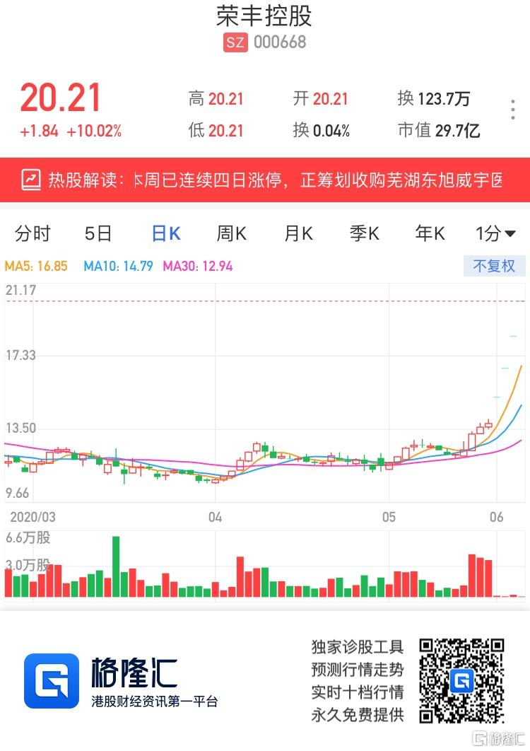 A股异动 | 荣丰控股(000668.SZ)四连板 正筹划收购芜湖东旭威宇医疗器械