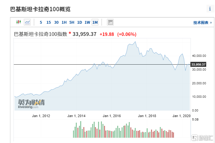 巴基斯坦卡拉奇100指数2010年以来走势(图片来源:英为财情)