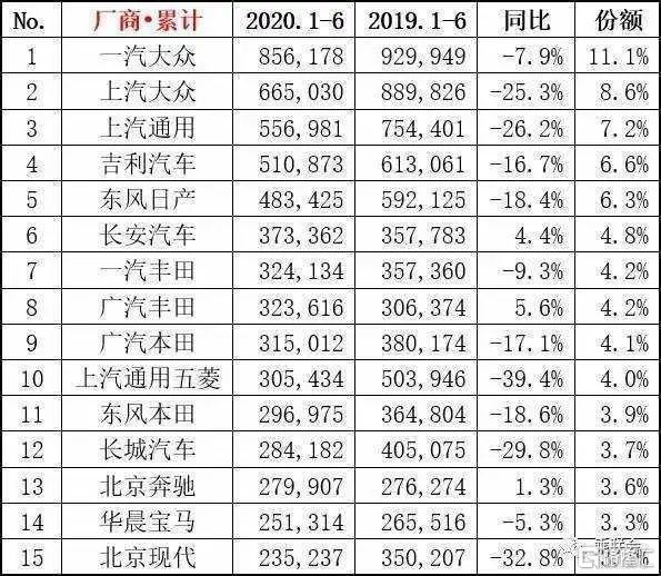 2020年已过半,车企们纷纷交出"期中销量考卷"。