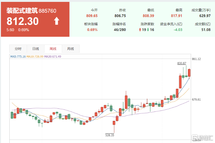 近日,受住建部等十三部门发文鼓励智能建筑和装配式建筑融合发展政策的影响,装配式建筑指数走势瞩目。