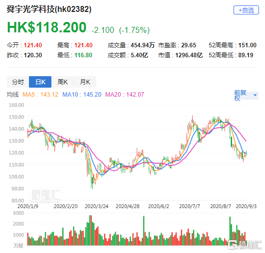 大和指,自8月17日以来,舜宇股价已调整了约20%,建议投资者趁此机会累积股票。