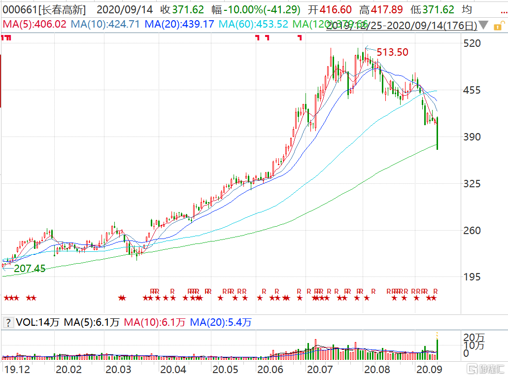 长春高新(000661.SZ)封跌停板 较8月创出的历史最高价跌27%