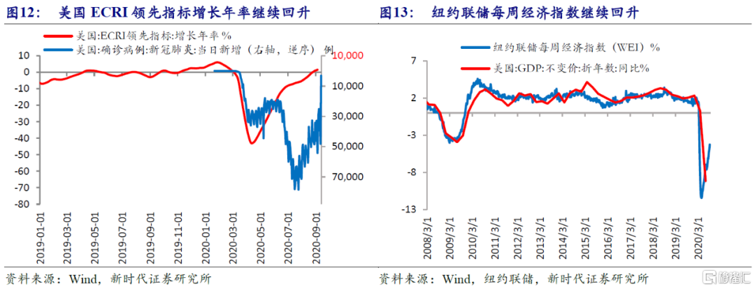 美国经济继续改善。9月4日当周,美国ECRI领先指标增长年率为1.6%,自前一周由负转正后继续修复,前值为0.7%;纽约联储每周经济指数(WEI)为-4.3%,前值由-4.4%下修至-4.8%。美国9月5日当周初次申请失业金人数为88.4万人,高于预期的84.6万人,与前值持平。