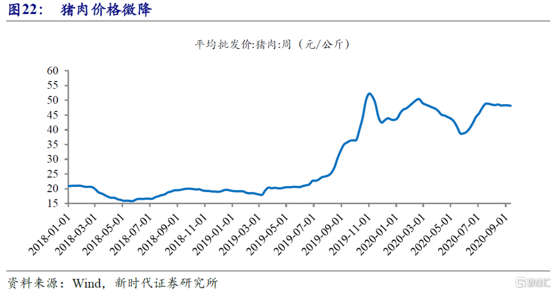 供需再平衡,CPI同比增速回落。8月CPI同比上升2.4%,环比上升0.4%,同比增速回落,猪肉价格对CPI的拉动减弱。猪肉供需再平衡,5月底以来猪肉价格持续上涨,至8月中旬趋于平稳。随着学校开学,以及中秋节、国庆节临近,猪肉价格存在上涨压力,不过在高基数的抑制下,猪肉价格对CPI的同比拉动将逐渐减弱。