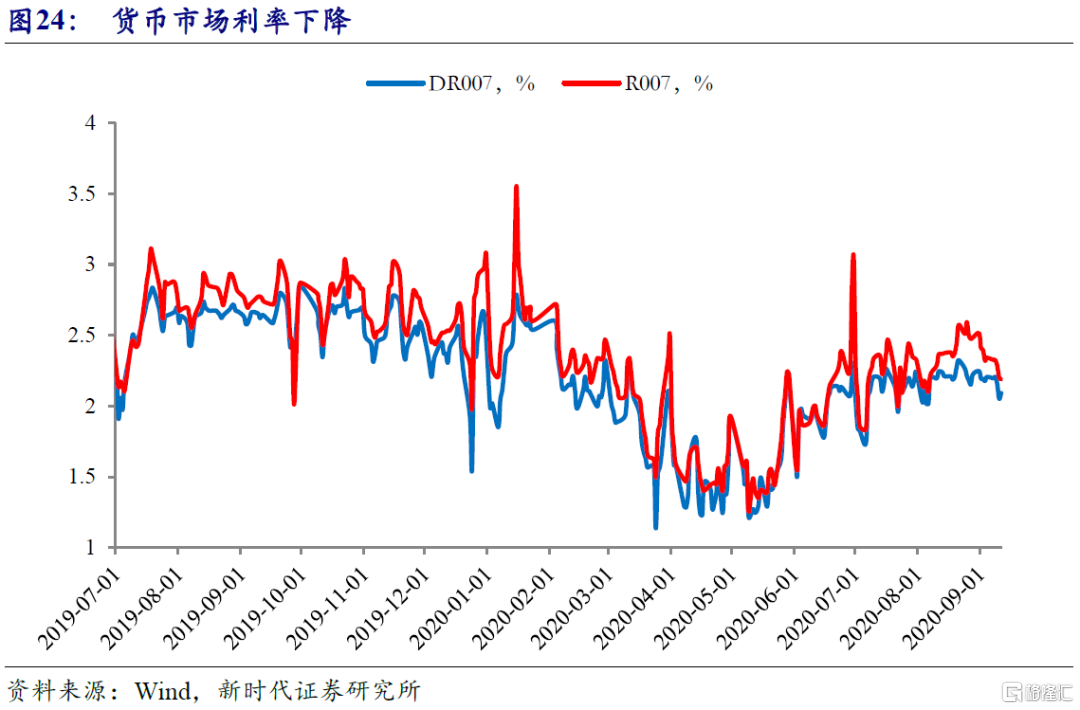上周,央行进行了总计6200亿元逆回购操作,带动货币市场利率整体下降,DR007一周下降11BP,R007一周下降15BP。