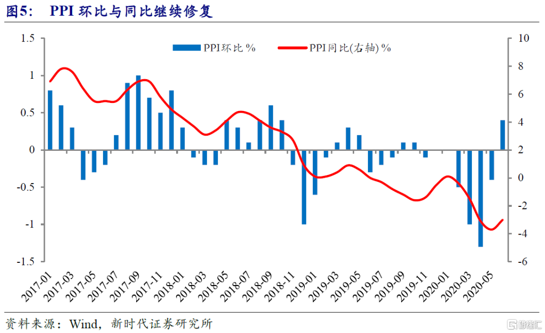 下半年经济继续修复,PPI增速大概率持续回升,整体的企业利润将继续改善。从结构上看,生产资料PPI增速回升幅度大于生活资料PPI增速,中上游企业盈利改善加快。下游企业生产生活资料,需求弹性相对小,受疫情的影响较弱。国有企业处于中上游且承担较多民生责任,加上中上游产品价格弹性大,疫情初期对中上游企业的负面冲击大于下游企业。随着基建投资和房地产投资的推进,中上游产品需求增加,产品价格增速快速上升,中上游企业的盈利增速高于下游企业,中上游企业累计利润增速逐渐追赶下游企业。