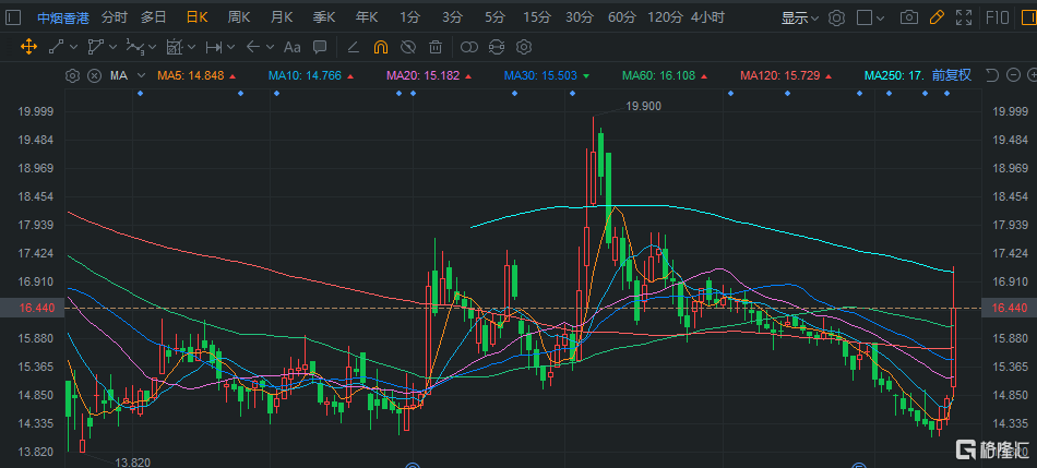 中烟香港(6055.HK)大涨11% 控股层完成重组