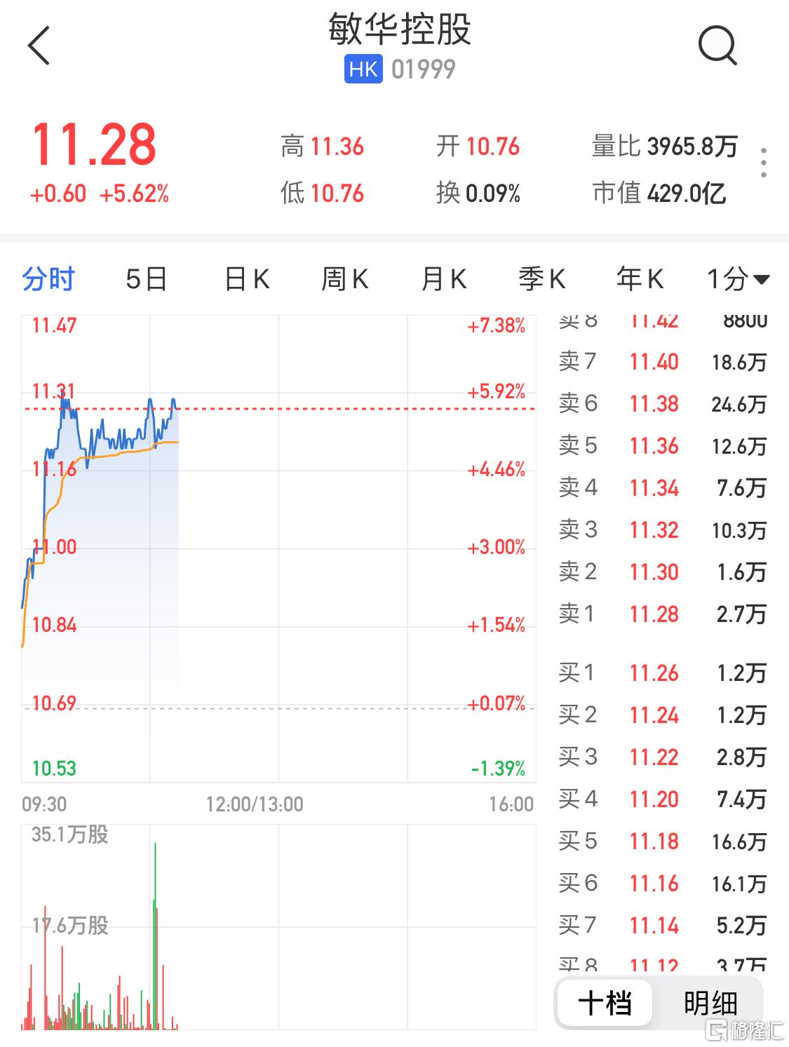 港股异动丨多重利好叠加 敏华控股(1999.HK)升超5%