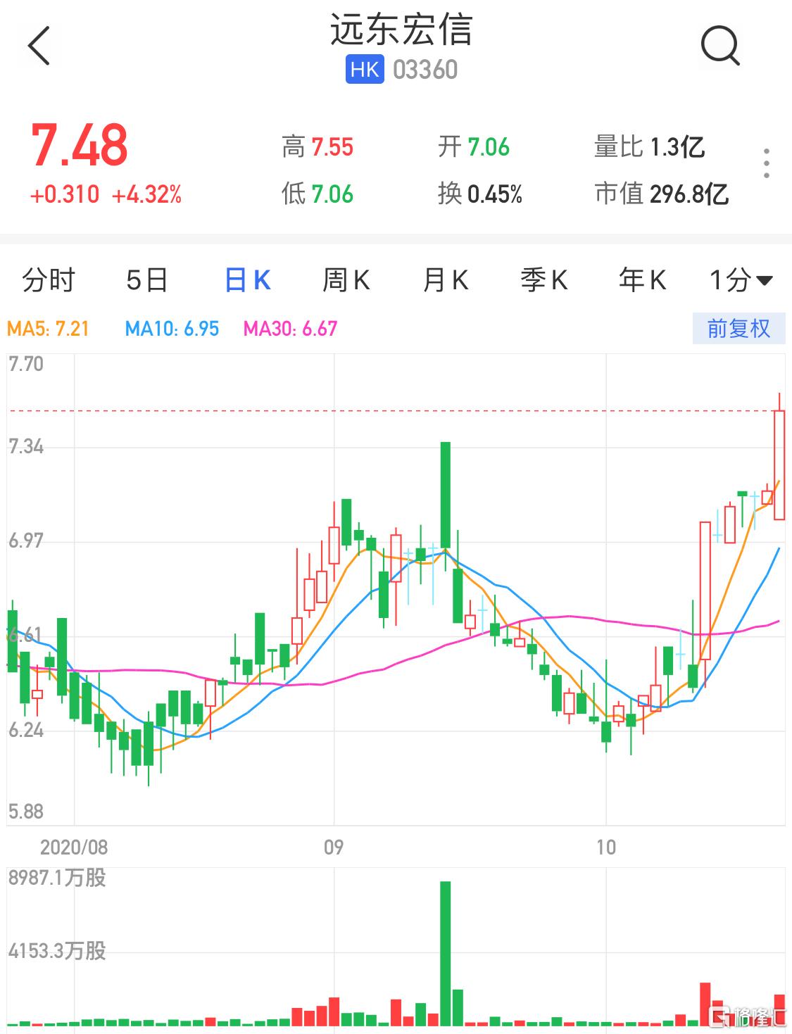 港股异动丨远东宏信(03360.HK)一度急涨超5% 股价创14个月新高