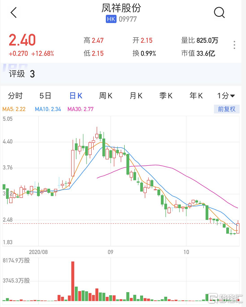 格隆汇10月28日丨凤祥股份(9977.HK)大涨12.68%,报2.4港元,总市值33.6亿港元。凤祥股份公布,第三季实现未经审核总收入约9.89亿元人民币,按季增长6.2%。期内,新零售业务实现销售收入约2.02亿元人民币,按季增长7.7%,按年增长1.33倍。