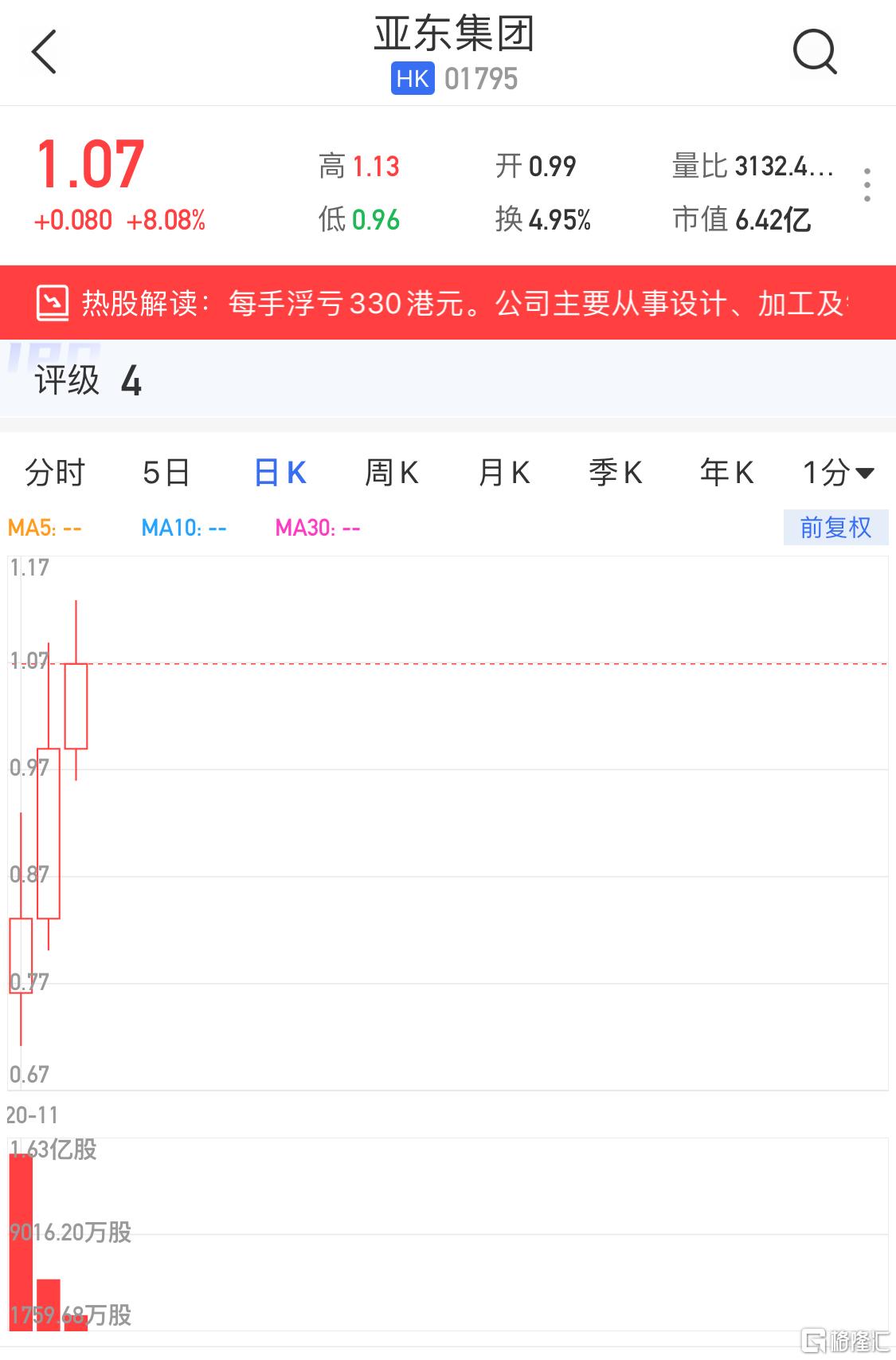 港股异动丨亚东集团(1795.HK)续涨8%盘中破顶 股价站上1港元整数关