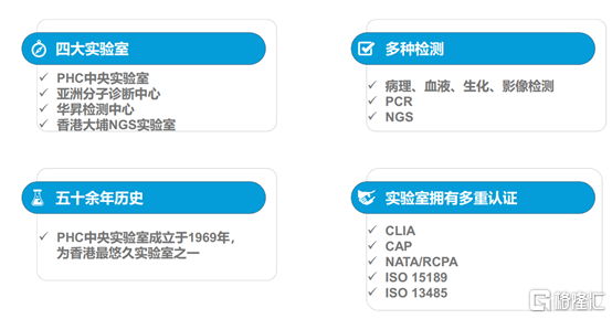 目前,公司的精准检测业务已形成涵盖第三方检验实验室和覆盖大中华地区的销售网络的完整体系。其中,香港PHC中央实验室创始于1969年,是香港最大第三方医学检测中心之一,目前在香港拥有超五十万客户,具有很高的品牌知名度。