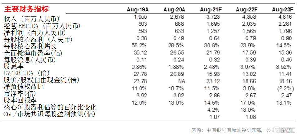我们将中教控股 21-22 财年(截至 8 月底止)的盈利预测分别提高 4.2%和 13.0%,以反映更好的利润率增长。我们看好中教控股是因为 1)其年度内生增长目标超过 15%;2)健康的现金流支持未来的并购;3)强大的整合能力,以增加新并购学校的利润;和 4).独立学院转设项目有助利润增长。正面的推动因素为:1)学生人数强劲增长和学费增加;以及 2)更好的利润率。