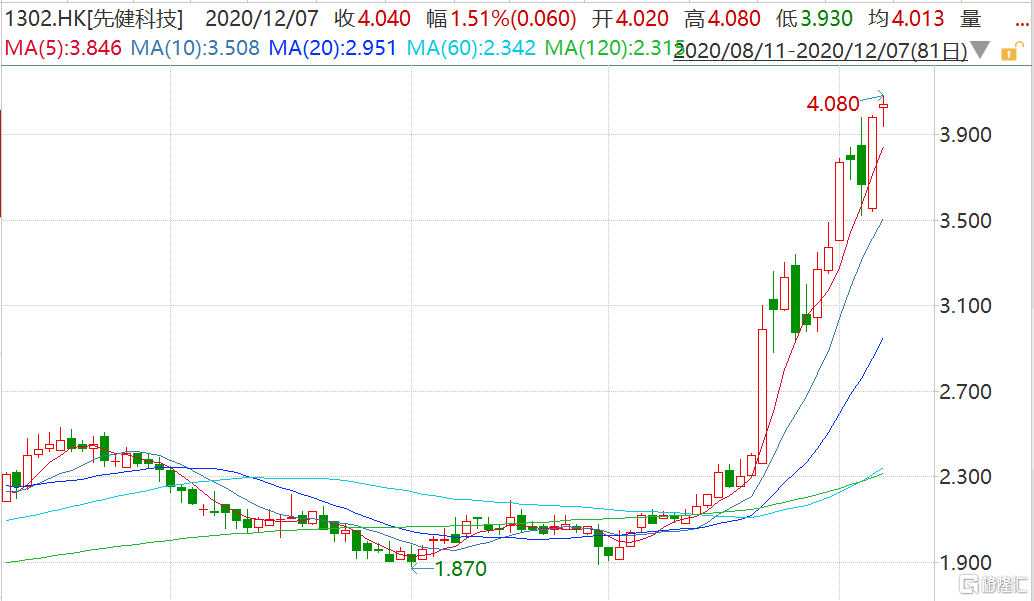 突破4港元关口 先健科技(1302.HK)再创历史新高