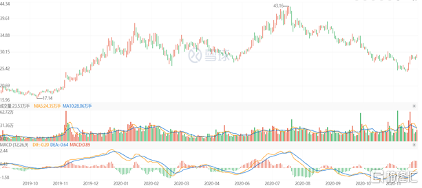 完美世界在疫情爆发后一路扶摇直上,最高于2020年7月24日触及历史最高点43.16元,而接下来的几个月则跌跌不休,目前仅徘徊在28.5元左右,从最高点下跌了34%。