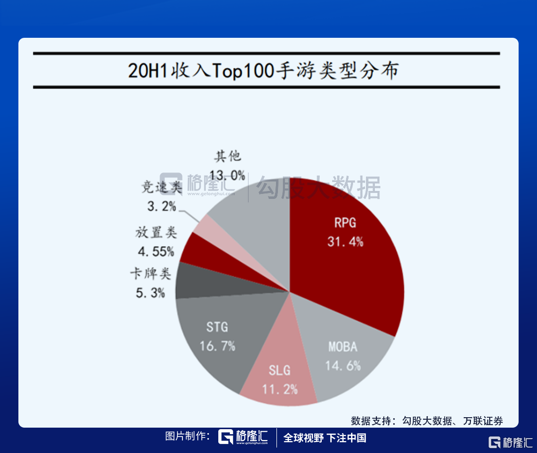 MMORPG这个游戏类别的特点在于拥有庞大的用户规模,和较高的ARPU。在2020上半年手游收入中,角色扮演类独占31.4%。