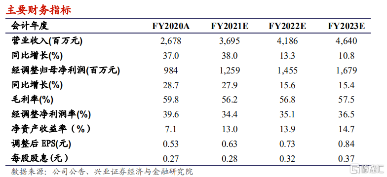 毛利率稳健,退费及新学校拉低净利率:FY20 公司毛利率达 59.8%,若以相同学校比较,毛利率达 58.6%,同比+1.2pct。销售费用率/行政费用率为 5%/13.9%,同比+2.3pct/-4.2pct,主要由于海外学校销售费用较高,但收购协同效益带动管理费率下降。期内净利润/归母净利润达 7.1 亿元/6.3亿元,yoy+3.4%/+6.8%;经调整归母净利达 9.84 亿元,同比+28.7%。若不考虑新学校及住宿费退费影响,期内经调整净利率为 48.6%,同比+3pct风险提示:1)国家教育政策变动;2)公司收购、自建等扩张进程不达预期;3)学生、家长对教学质量满意度下降;4)VIE 架构政策风险。