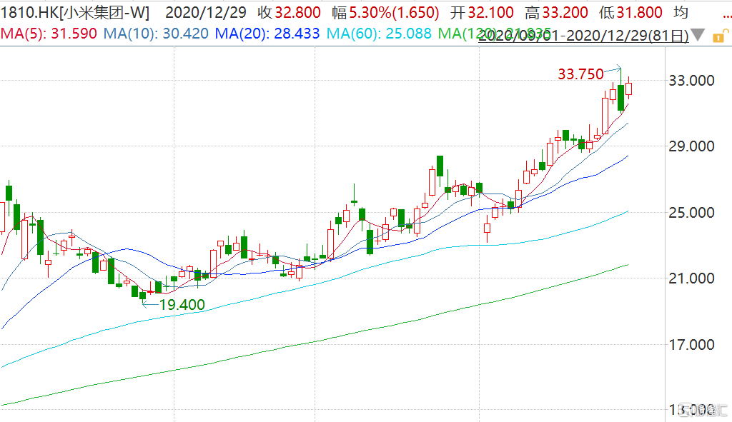 格隆汇12月29日丨小米(1810.HK)盘中快速拉升一度涨6.58%至33.2港元,市值超8300亿港元。小米在12月28日发布小米11,售价3999元起,将在1月1日0点开售。中信证券最新发研报认为,小米11在全球首发高通骁龙888,在性能、快充、屏幕、影音和系统等关键领域全方位提升,综合竞争力较强,且在米10系列成功突破的基础上,市场信心和公司备货都更充足,有望在高端化方面取得更大突破。高端化的成功突破,将提升公司品牌形象和溢价能力,获得互联网ARPU值显着更高的用户,将进一步提升公司的盈利能力和估值空间。维持对公司的“买入”评级。