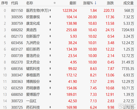 今日,医药生物板块市场表现火热,医疗ETF大涨4%,其中CRO板块最为亮眼,康龙化成涨近11%,昭衍新药一字板封涨,泰格医药、美迪西、药石科技、药明康德均涨超7%。同时,港股康龙化成涨近10%,药明康德大涨5%。