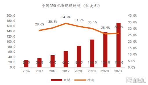 预计到2023年全球的CRO规模将达到877亿美元,中国的CRO市场规模将会达到172亿美元,占全球规模的约20%,年复合增速达28.54%(2019-2023年),维持在高位水平。