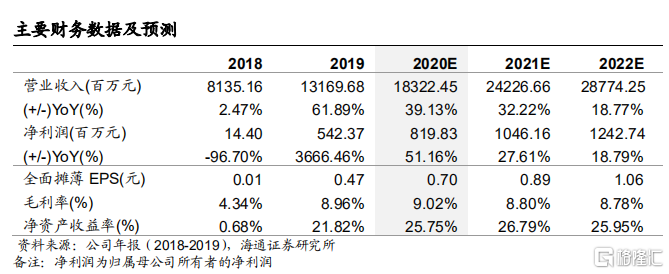 公告 2020 年正面盈利预告。2020 年,公司预计归母净利润较 2019 年同比增长 40%~60%,至 7.6~8.7 亿元人民币。