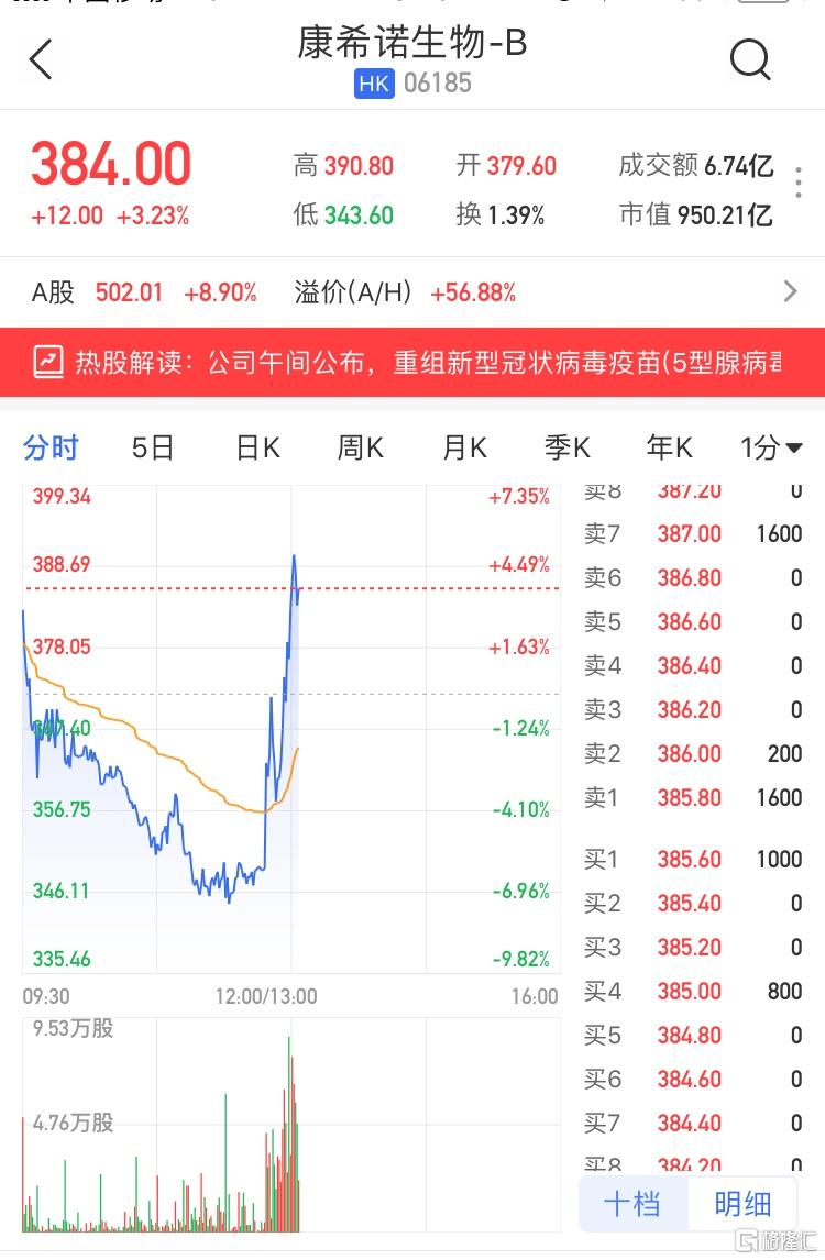 格隆汇2月24日丨康希诺生物-B(6185.HK)午后拉升,一度涨超5%至390.8港元,振幅达12.69%。康希诺今日午间宣布,公司与军事科学院军事医学研究院生物工程研究所共同开发的重组新型冠状病毒疫苗(5型腺病毒载体)(“Ad5-nCoV”,商品名为克威莎™),在巴基斯坦、墨西哥、俄罗斯、智利及阿根廷5个国家开展了全球多中心Ⅲ期临床研究,已完成4万余受试者的接种及期中数据分析。2021年2月21日,公司已正式向国家药监局提交附条件上市申请,并获得受理。