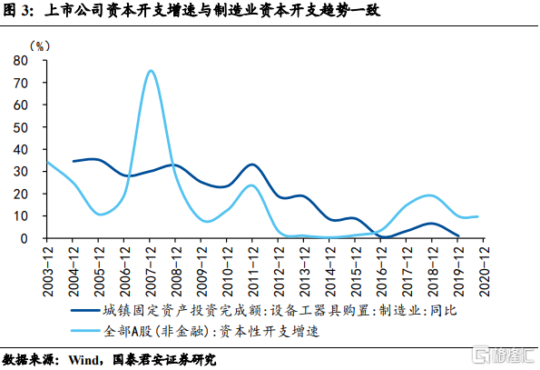 那么哪些行业补库后将迎来资本开支的提升呢?类似库存的研判框架,我们从资本开支速度和资本开支空间两维度对资本开支恢复情况进行考察。需要说明的一点是,我们利用上市公司资本开支(即CAPEX)代替行业设备投资来表征企业资本开支水平。原因是行业层面数据不够高频(年度)并且滞后(仅到19年),并且上市公司资本开支与制造业设备工器具购置增速趋势基本一致,因此使用上市公司资本开支也存在一定的合理性。