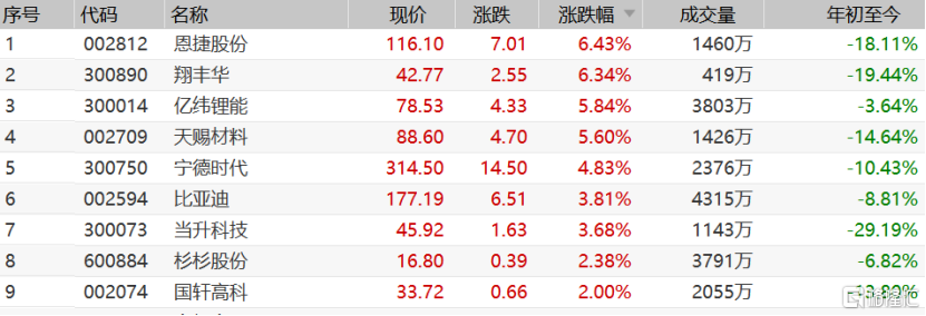 动力电池板块集体反弹,恩捷股份、翔丰华、亿纬锂能、天赐材料涨超5%;宁德时代、比亚迪、当升科技上涨3%。除了隔夜美股大反弹的带动影响,在美上市的中国造车新势力蔚来、理想、小鹏被报道称计划最早于今年在港股上市,一定程度上增强了市场对新能源车的信心。