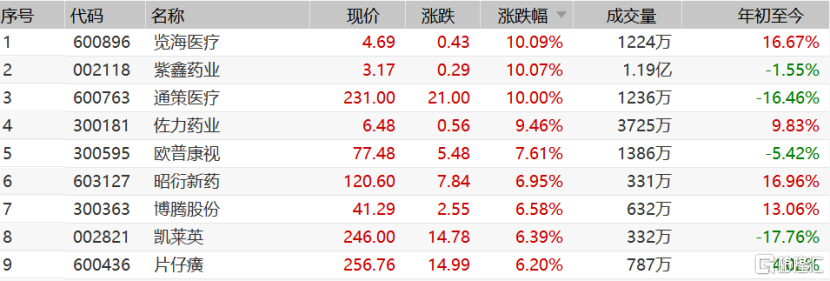 前期跌幅惨烈的医药生物板块亦开启反弹。览海医疗、紫鑫药业、通策医疗涨停封板;佐力药业、欧普康视、昭衍新药等大涨7%;片仔癀、药明康德、康龙化成、英科医疗、迈瑞医疗、爱尔眼科等细分领域龙头涨逾5%。