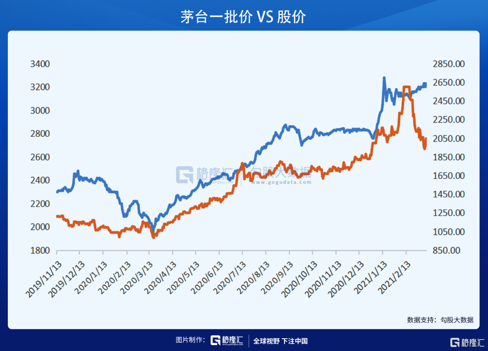 白酒领域最有代表性的指标,是茅台的一批价,过去与茅台的股价基本同涨同跌,但看这波,茅台股价崩了,但批价很稳。