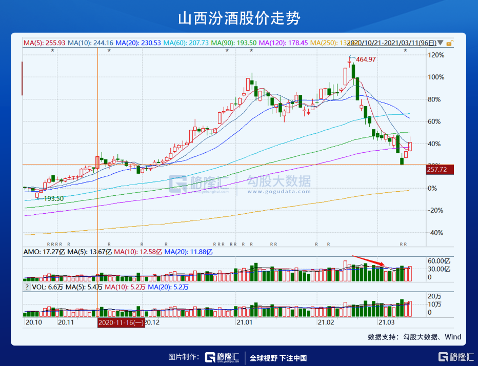 但是,同一个250,汾酒还是那个汾酒,那个成长性不错的汾酒,投资者的交易心态已经经历了沧海桑田般地变化。